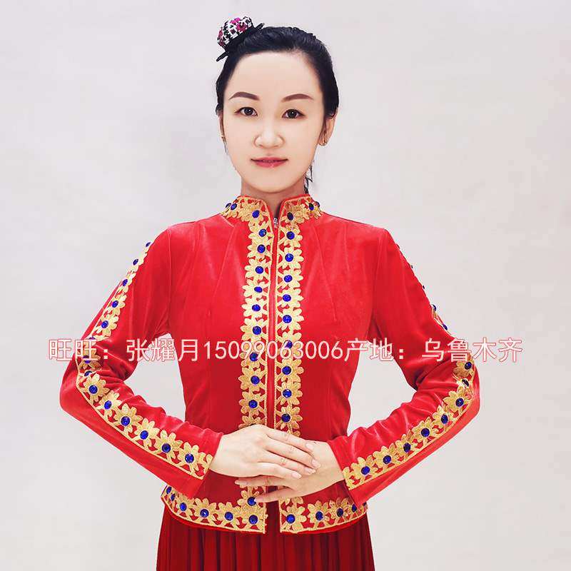 服装表演舞蹈新疆维吾尔民族维族舞台服饰长袖上衣秋冬装马甲外衣热门设计联盟服务商