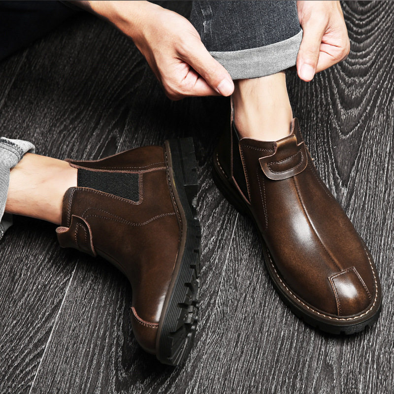 切尔西靴2021秋冬季新款英伦潮流工装男士靴加绒保暖高帮男鞋热门设计联盟服务商